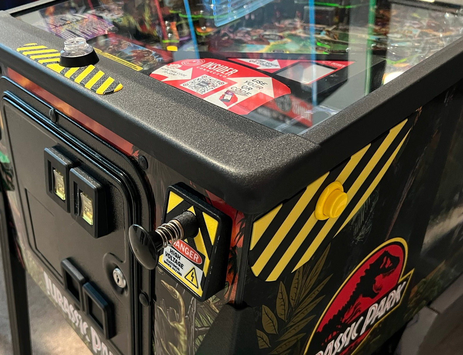 Secure the paddock and protect your machine. This Jurassic Park–inspired bundle includes three essential mods that reinforce your cabinet’s most vulnerable zones while amplifying the theme of danger and adventure. Featuring caution-striped graphics and rugged finishes, each piece is designed to echo the aesthetics of a high-security dinosaur facility.