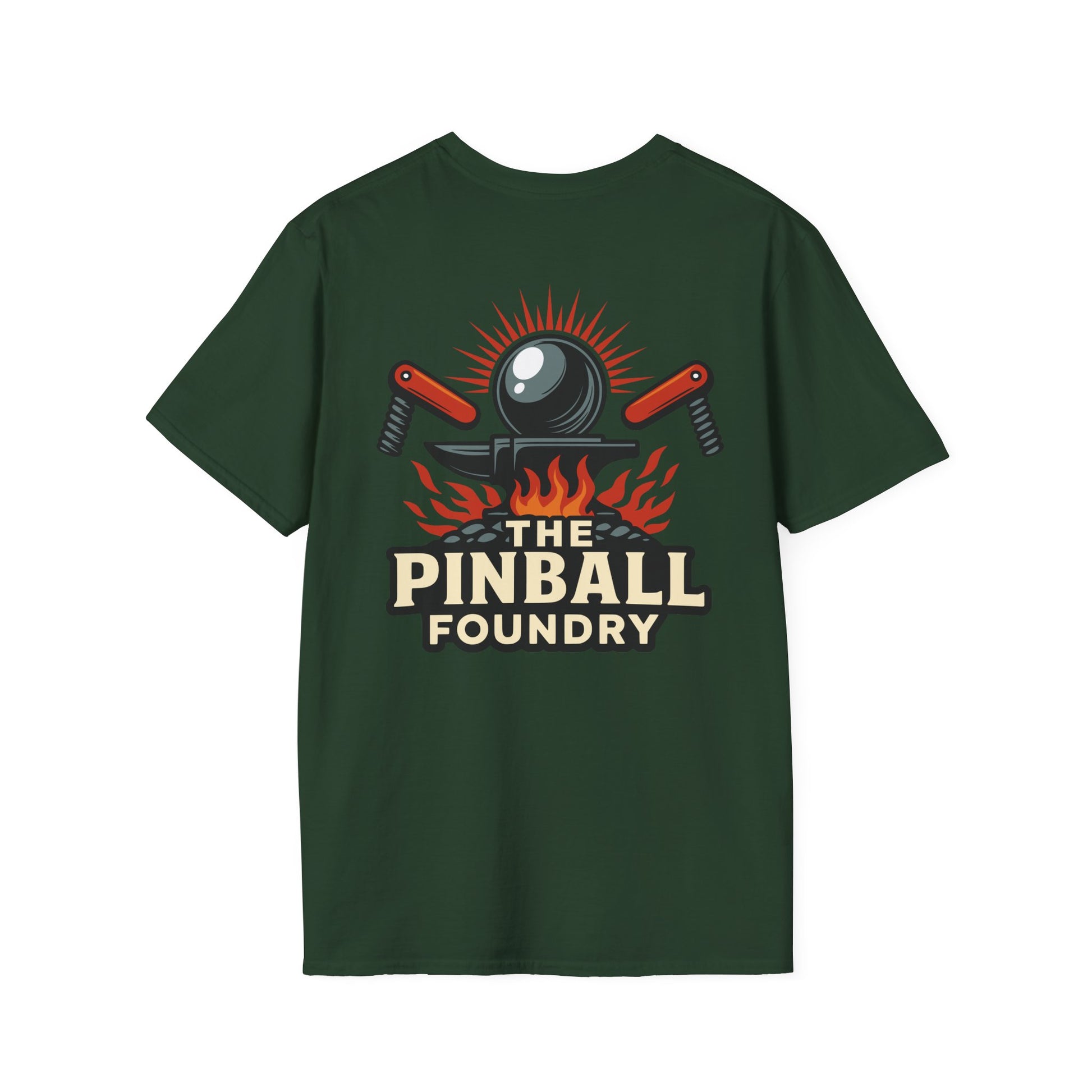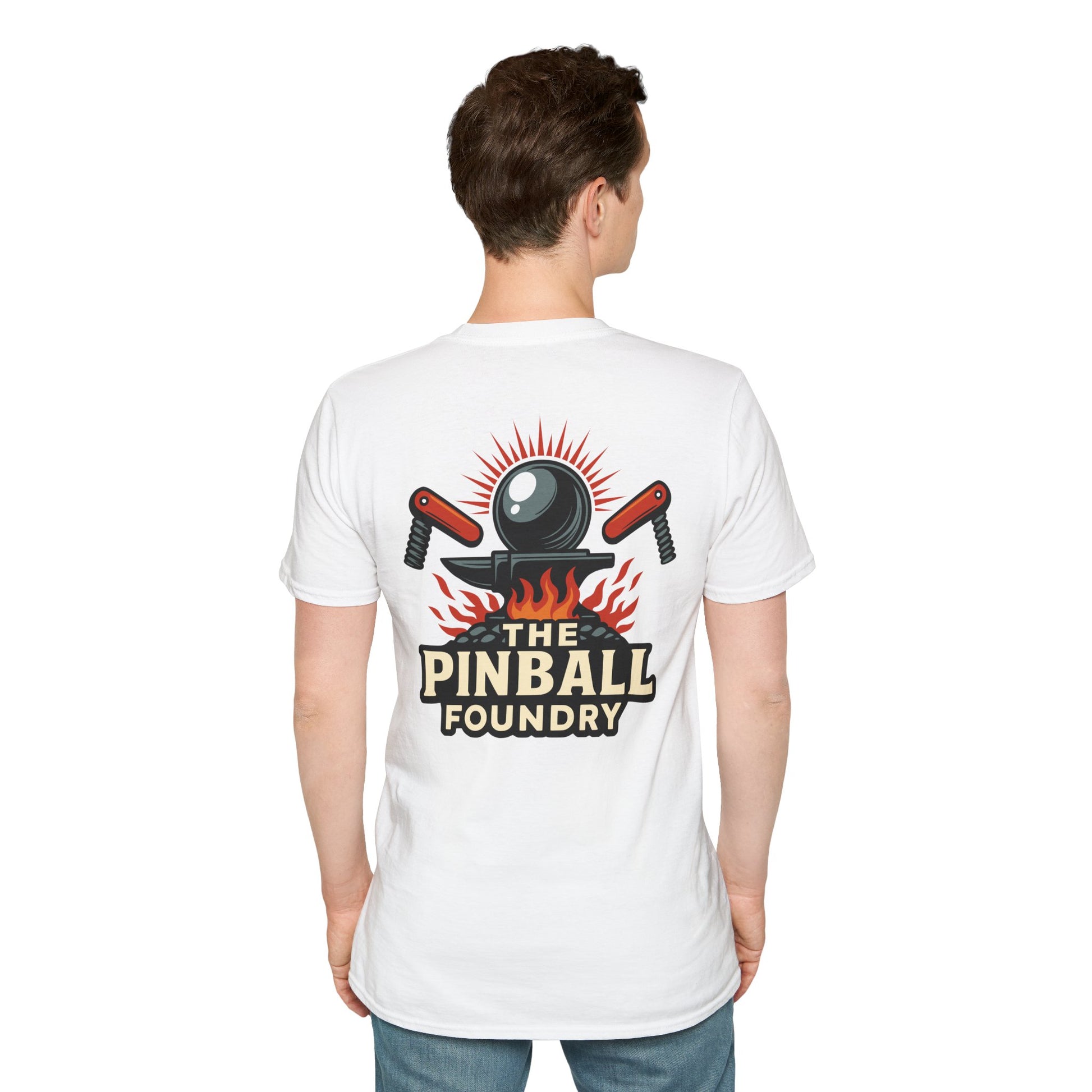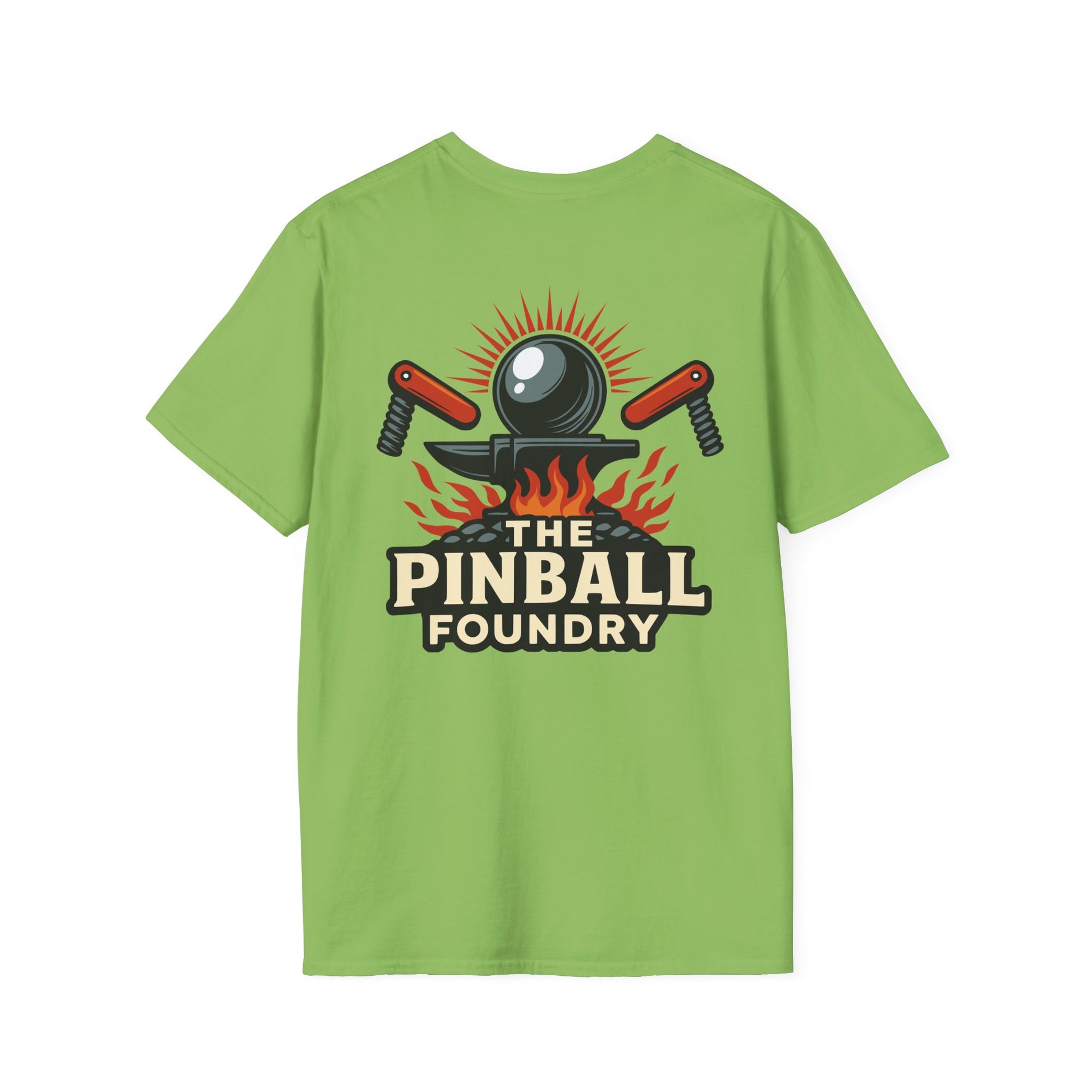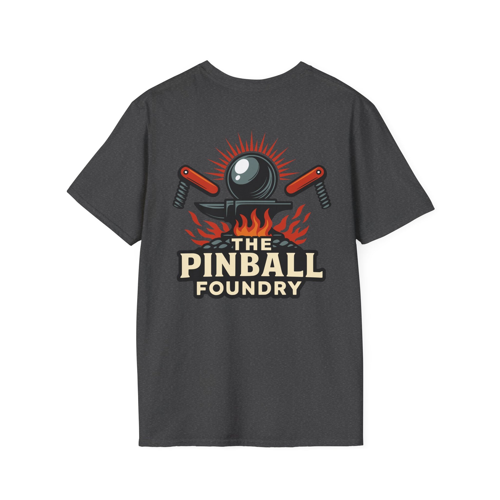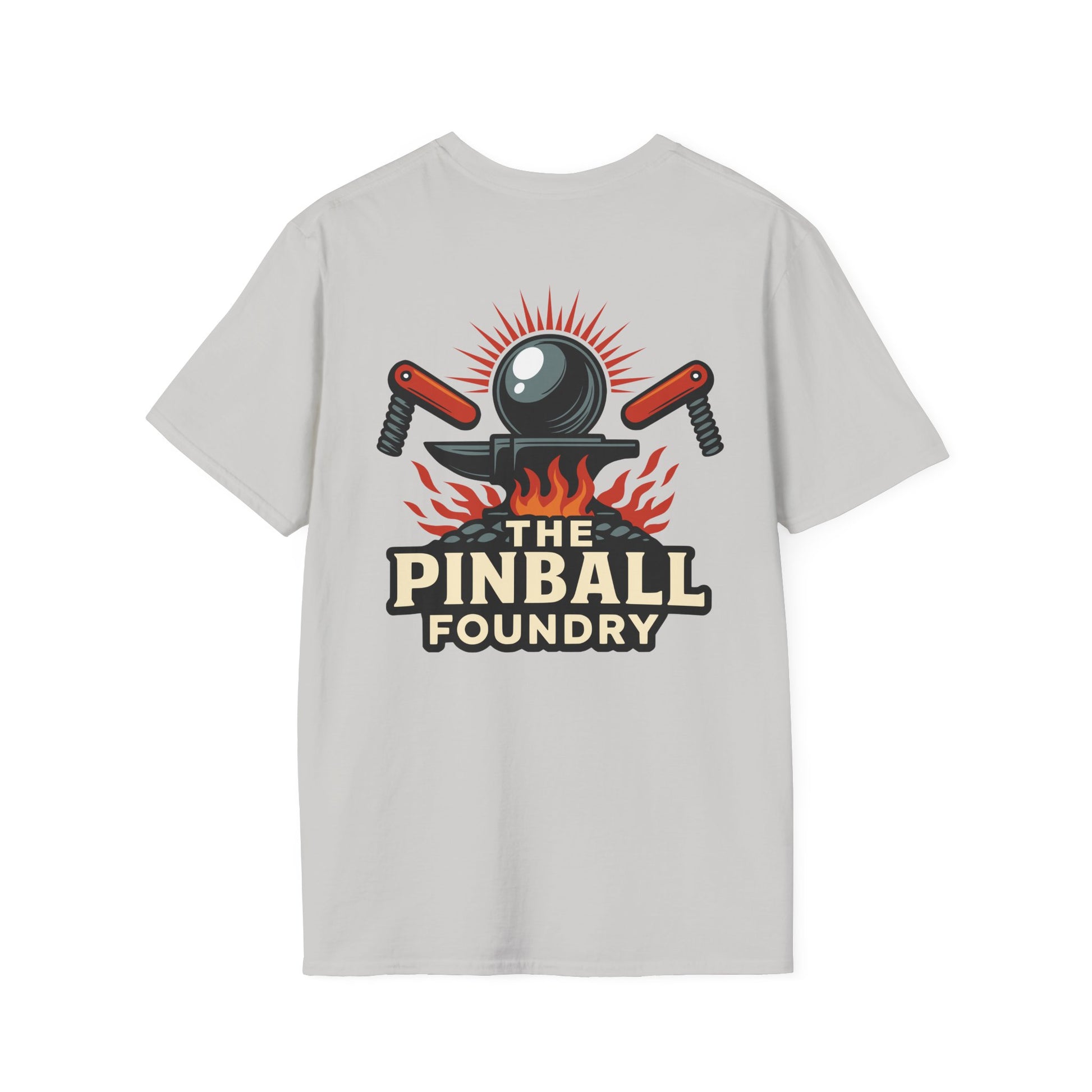 The Pinball Foundry Logo, Gaming T-Shirt, Unisex Softstyle T-Shirt, Perfect Gift for Gamers, Casual Wear, Pinball Lover Apparel