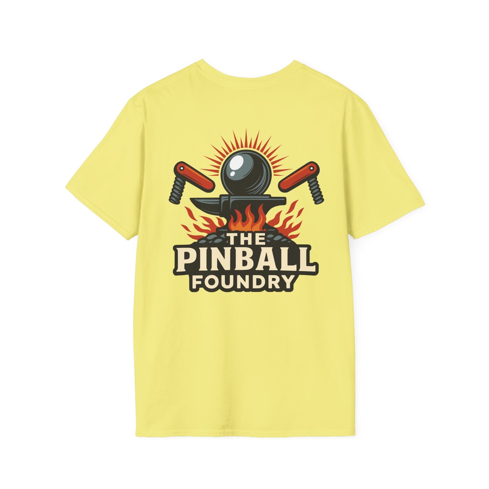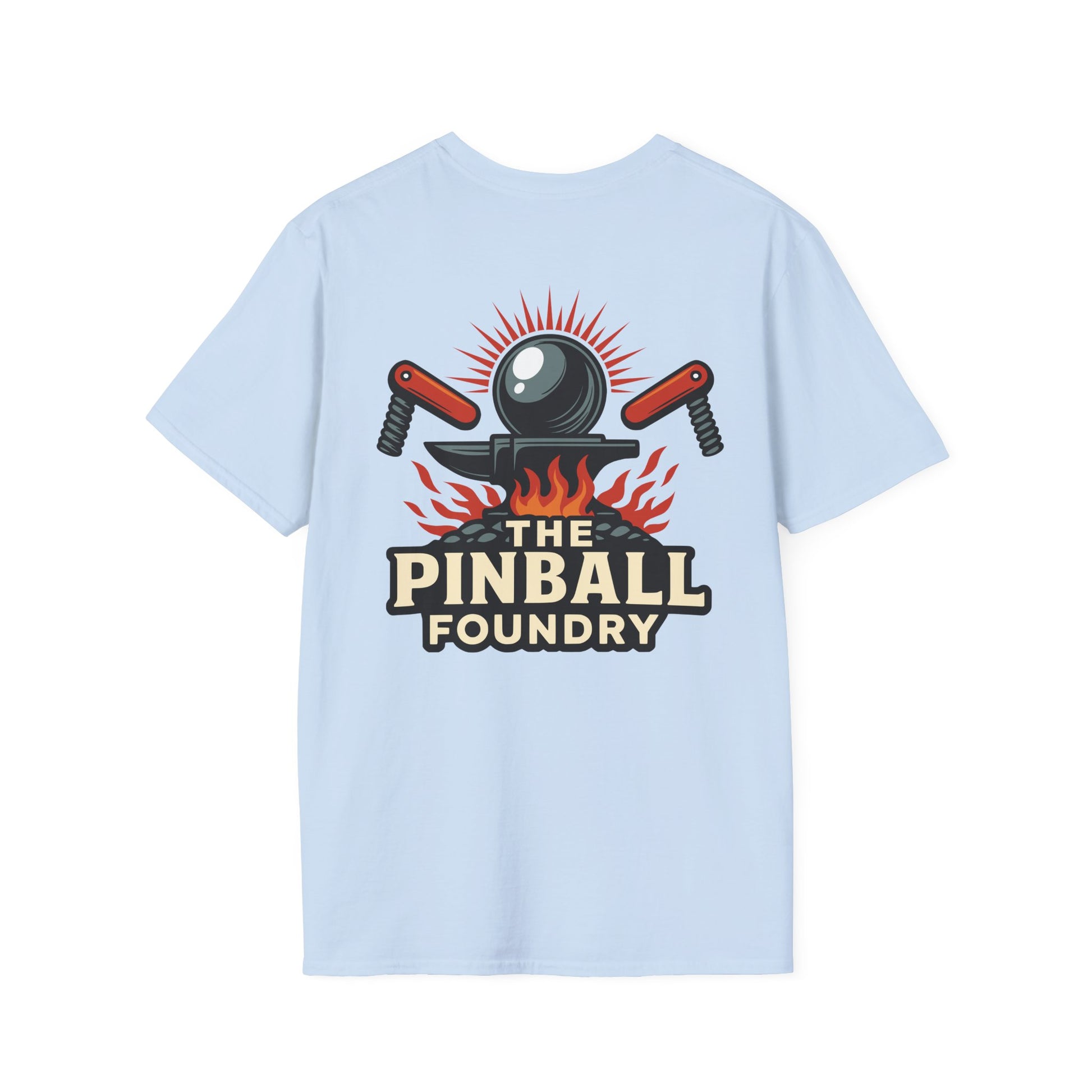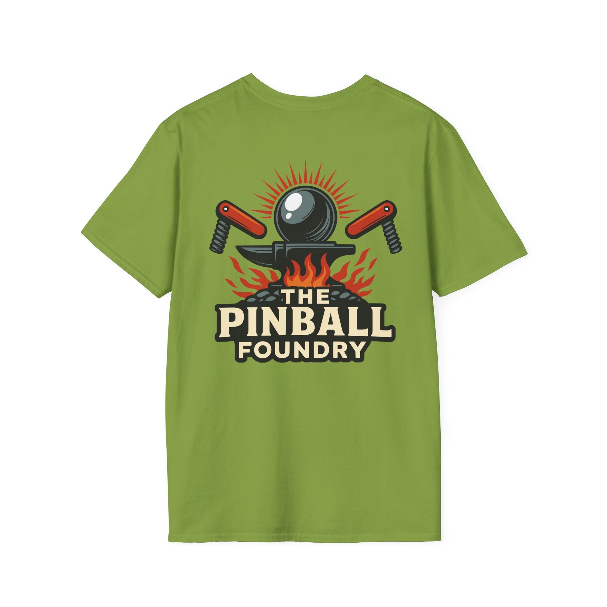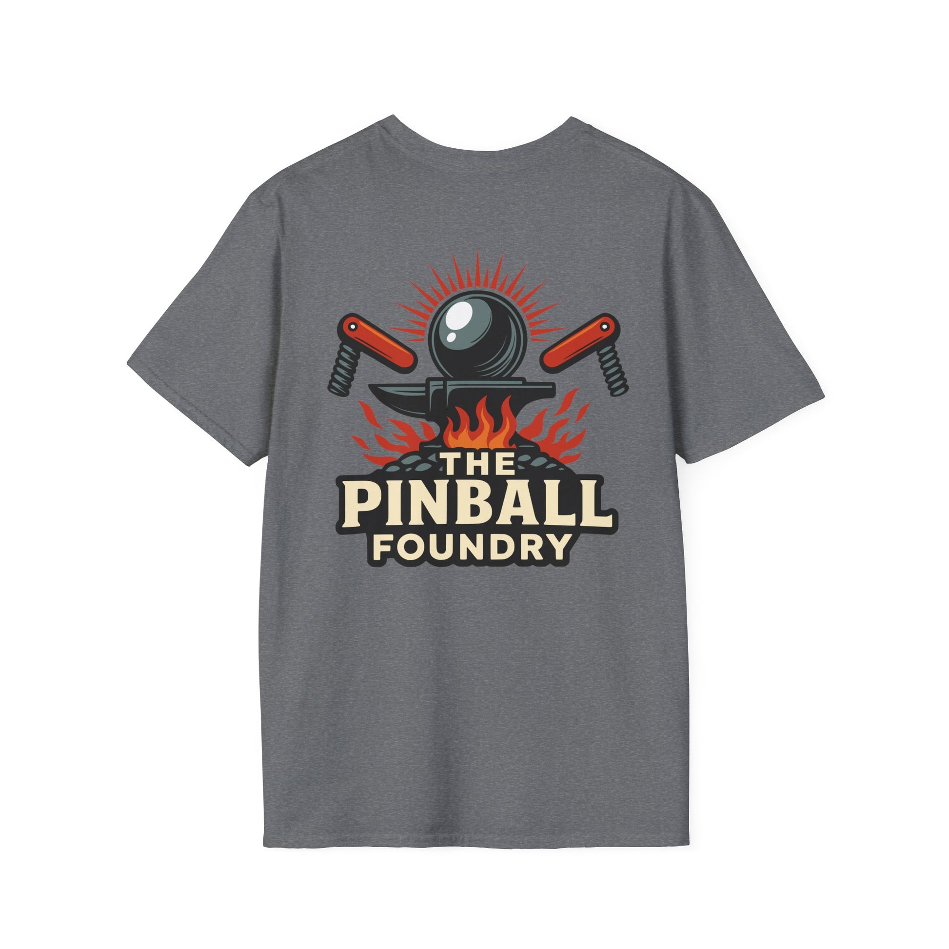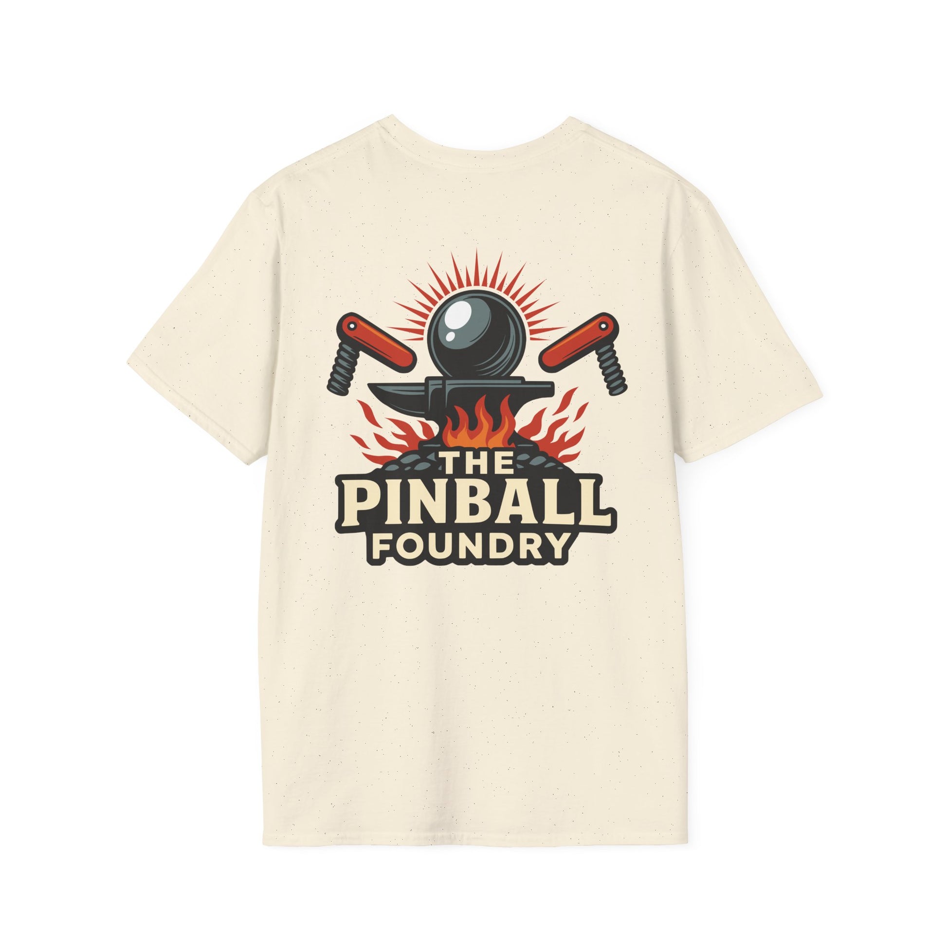 The Pinball Foundry Logo, Gaming T-Shirt, Unisex Softstyle T-Shirt, Perfect Gift for Gamers, Casual Wear, Pinball Lover Apparel