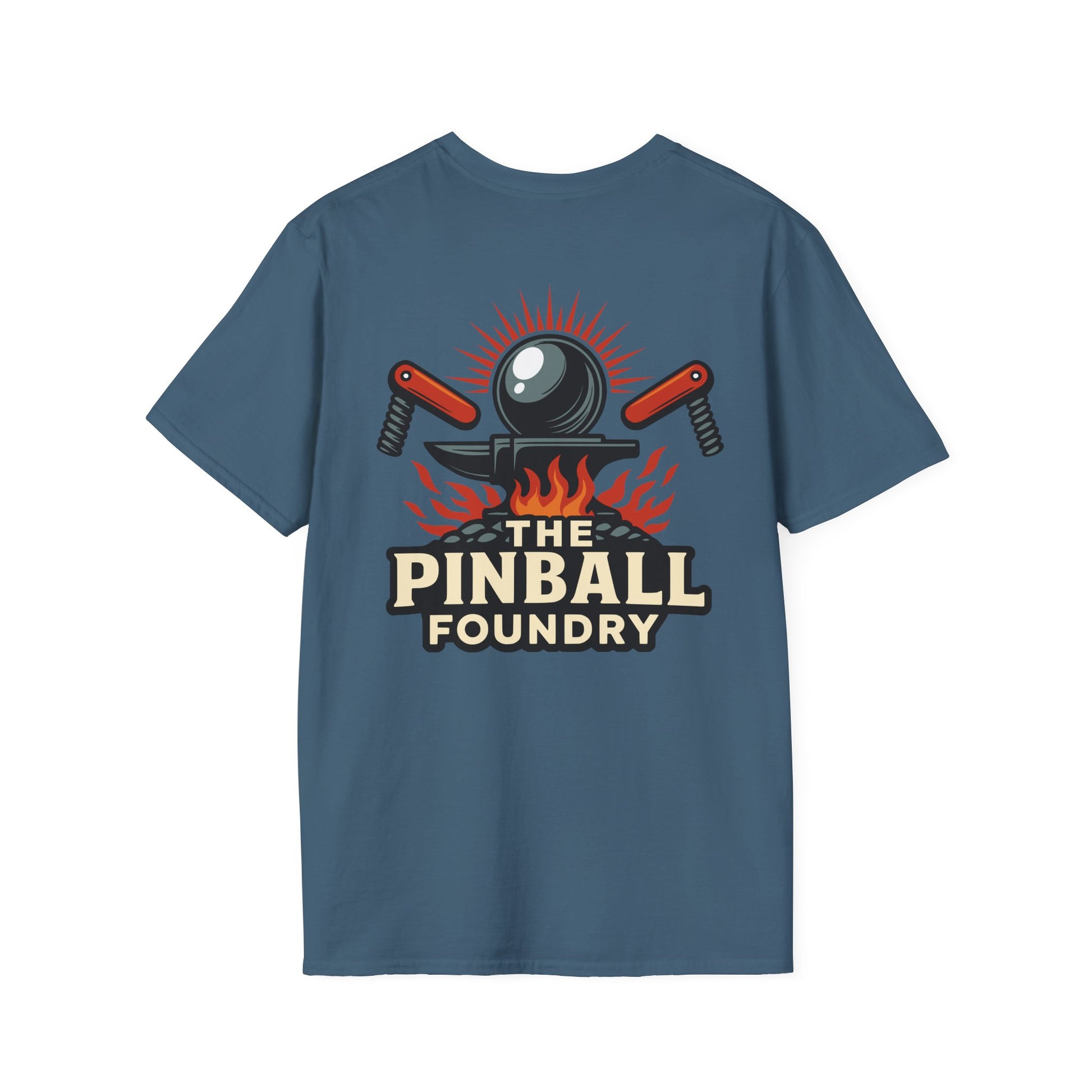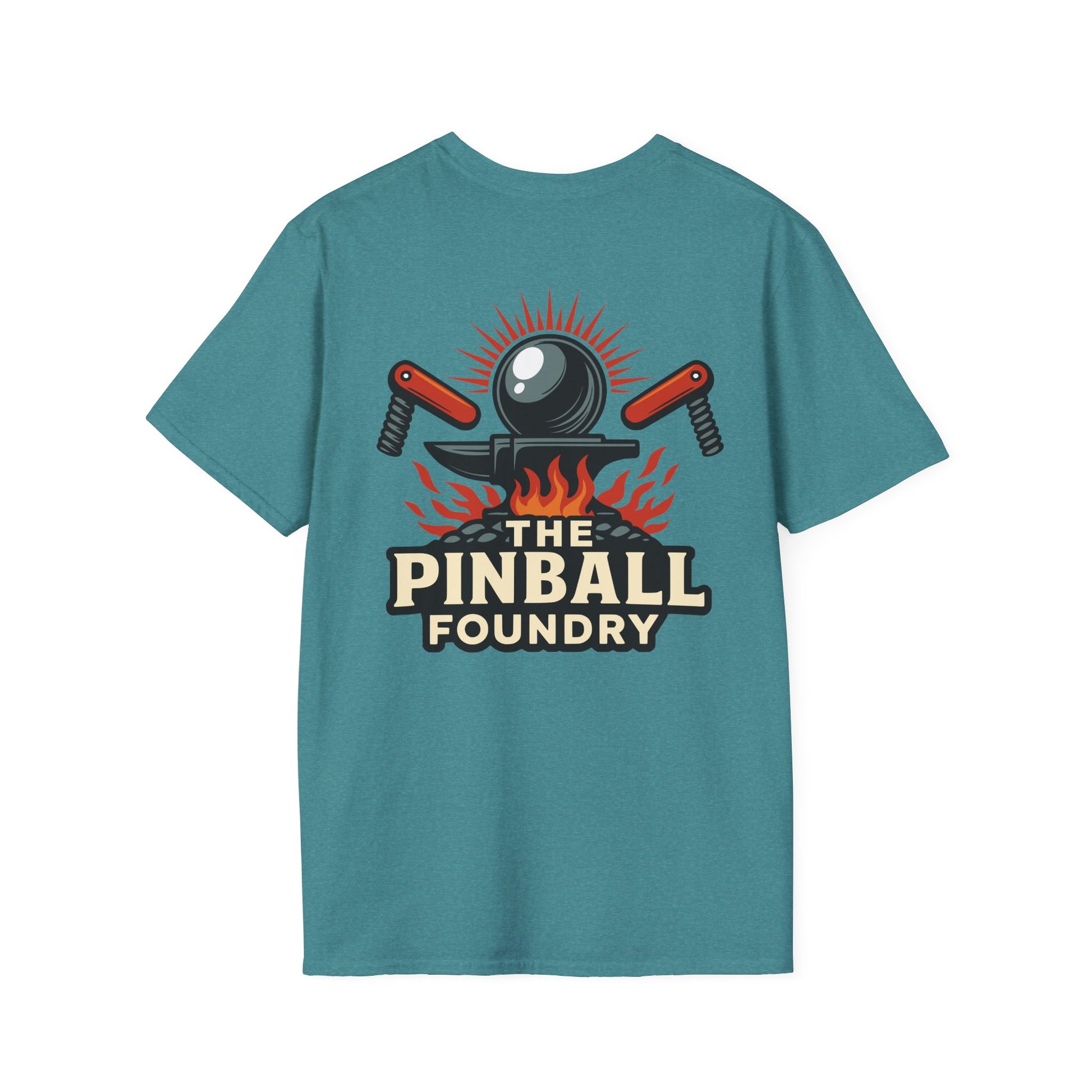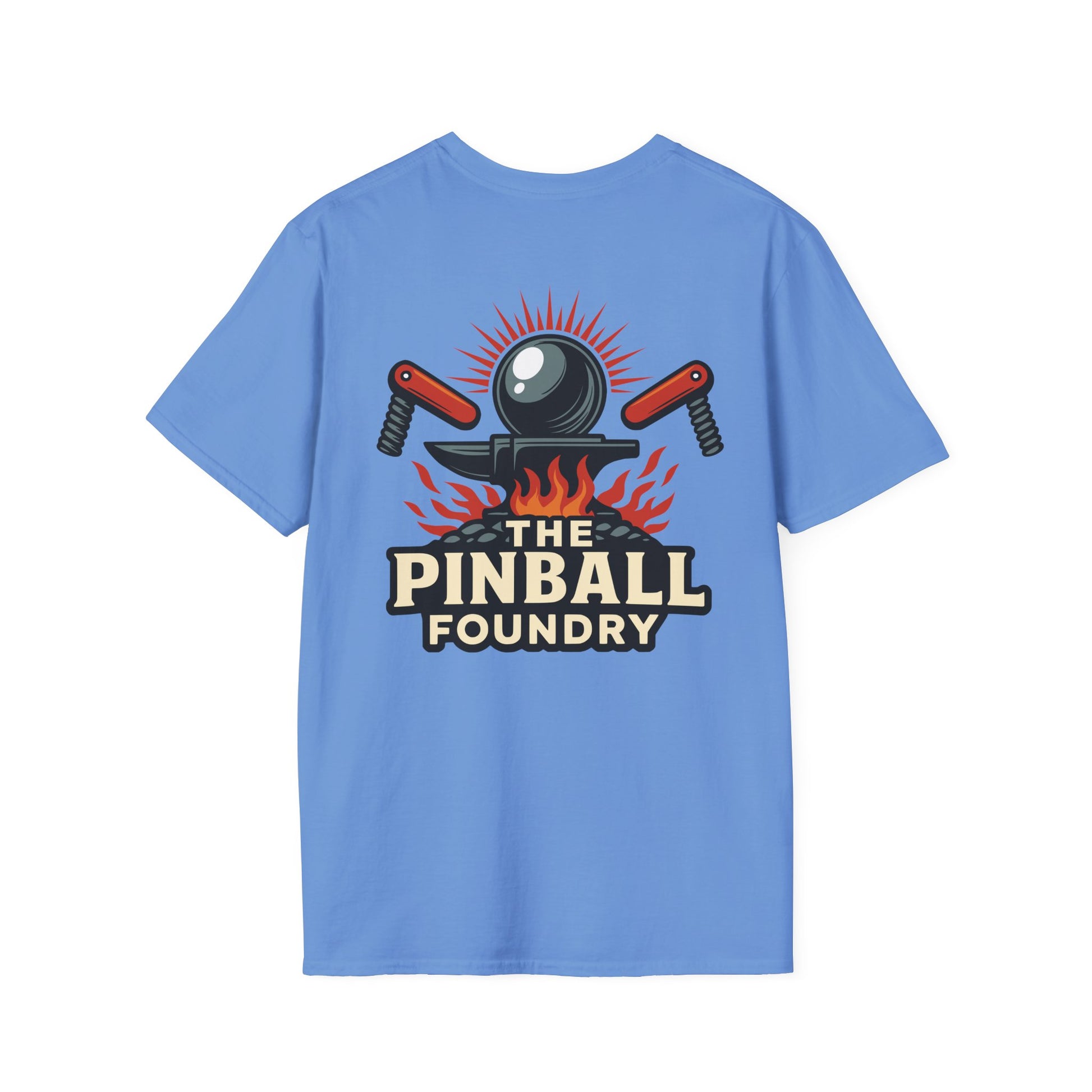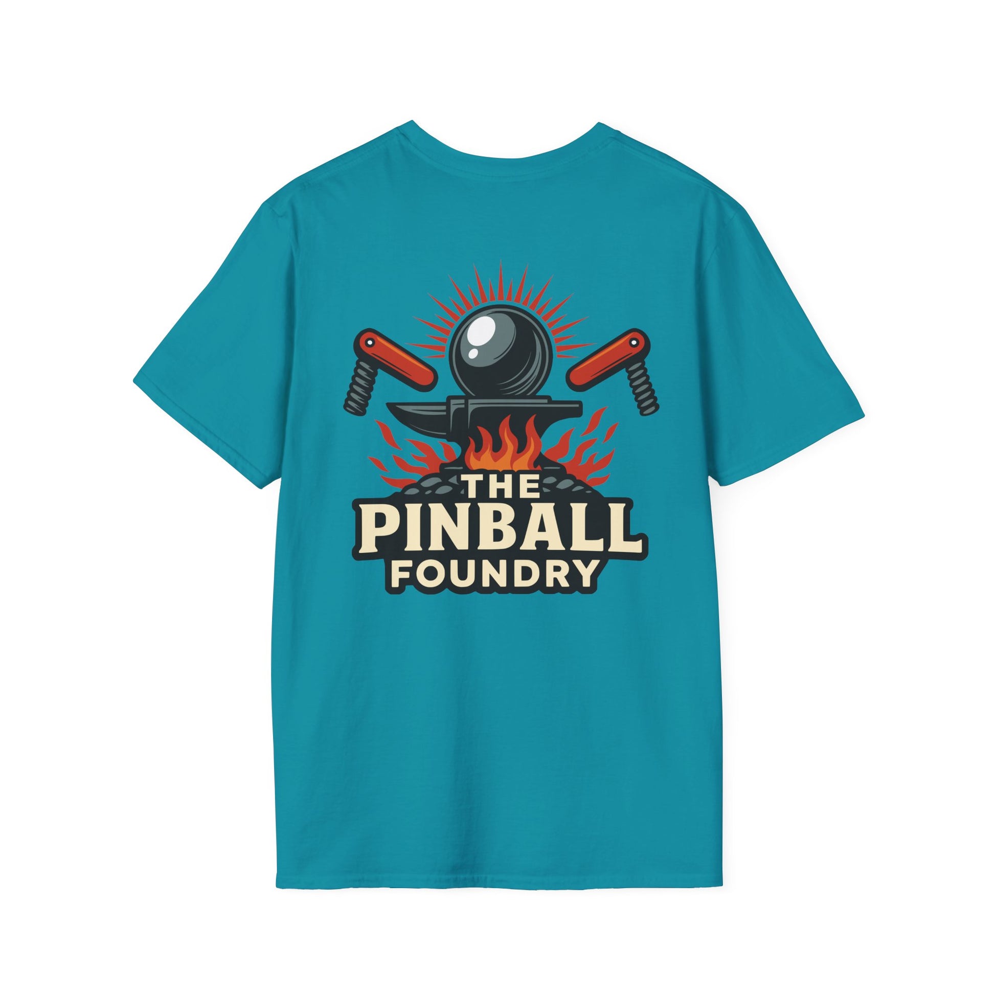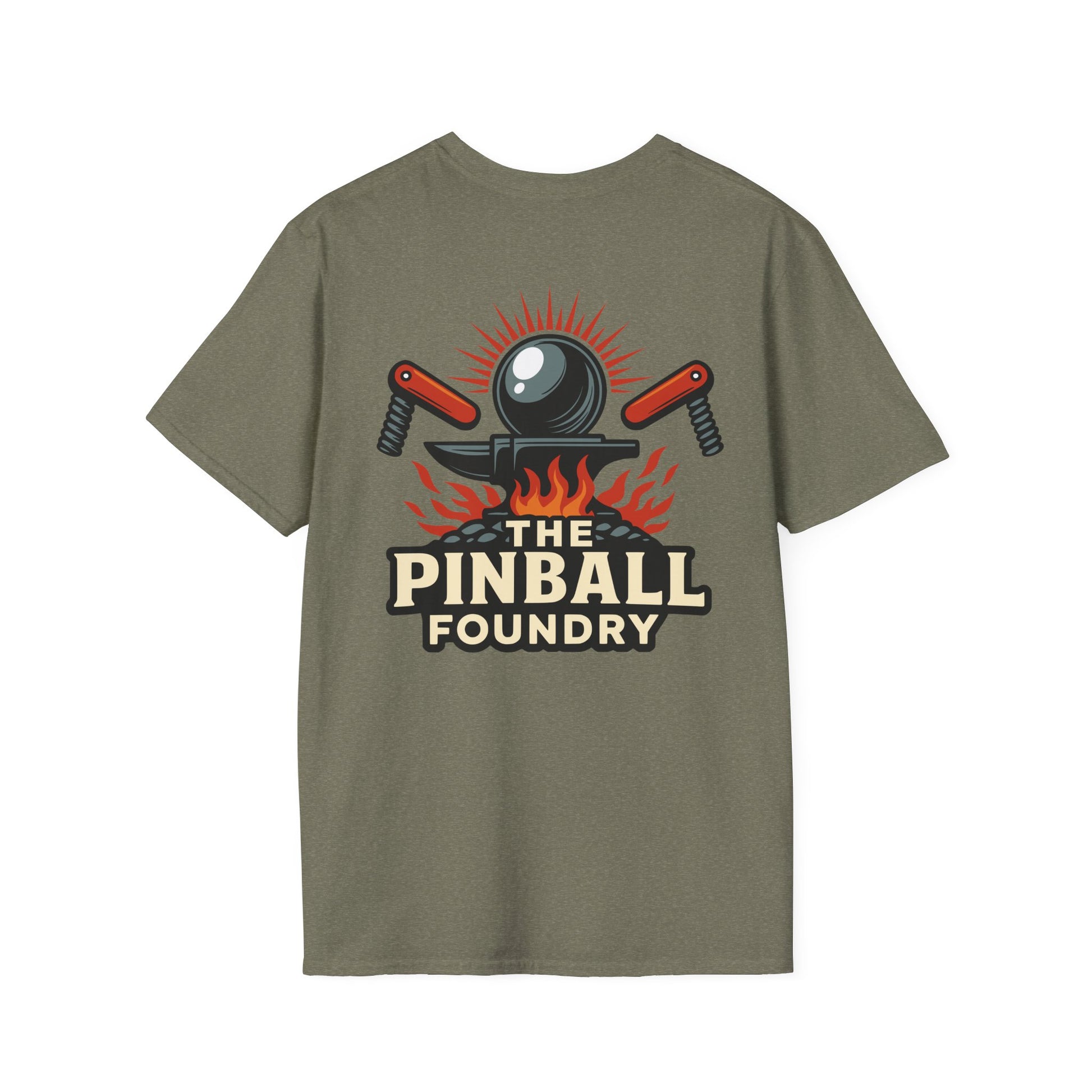 The Pinball Foundry Logo, Gaming T-Shirt, Unisex Softstyle T-Shirt, Perfect Gift for Gamers, Casual Wear, Pinball Lover Apparel